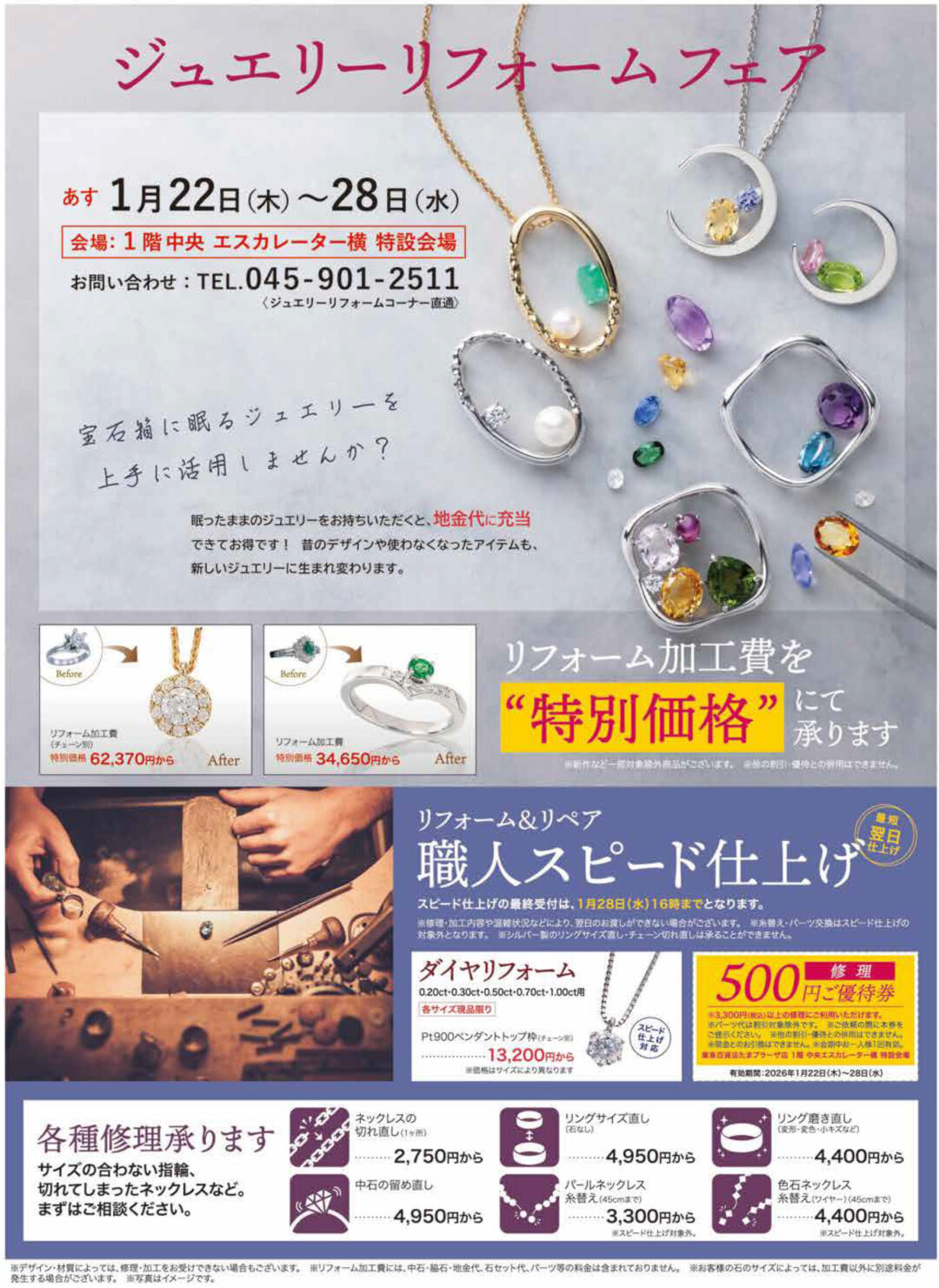 3. 【終了】1/23-29 東急百貨店 たまプラーザ店 ジュエリーリフォームフェア