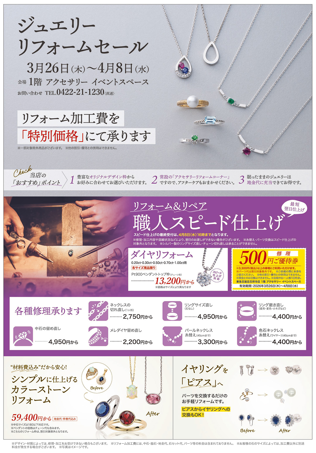 ※常設店舗は1階アクセサリー売場 アクセサリーリフォームコーナー