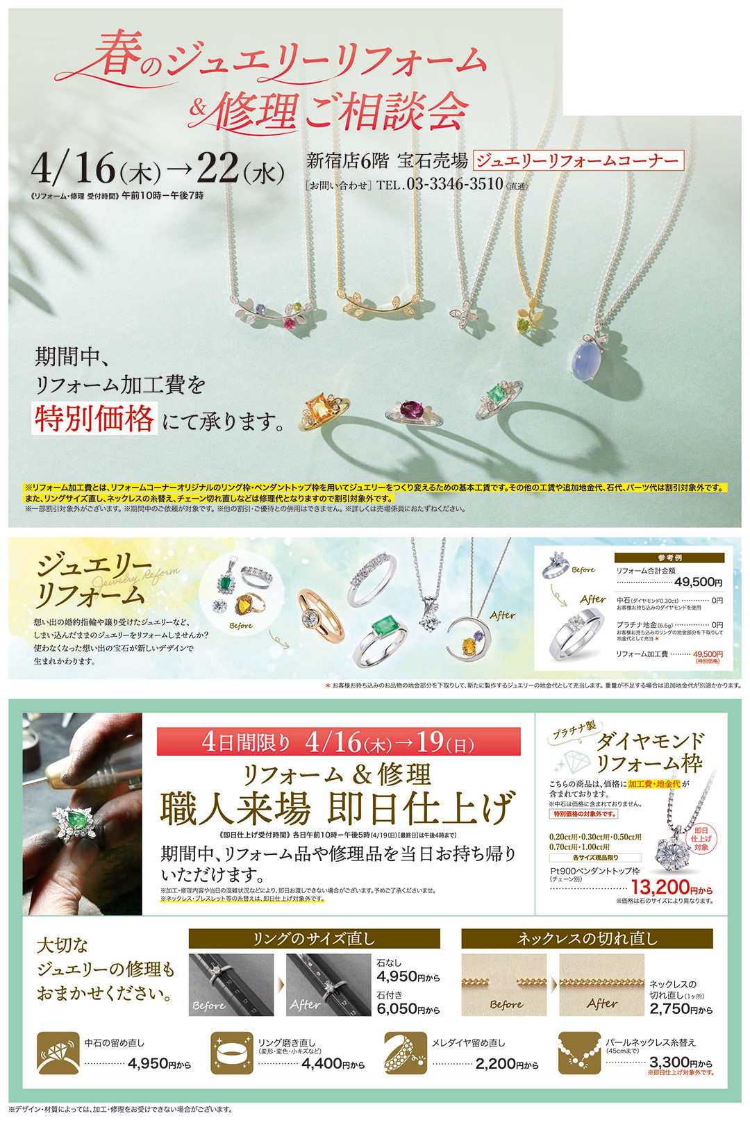 春のジュエリーリフォーム&修理ご相談会 開催のご案内