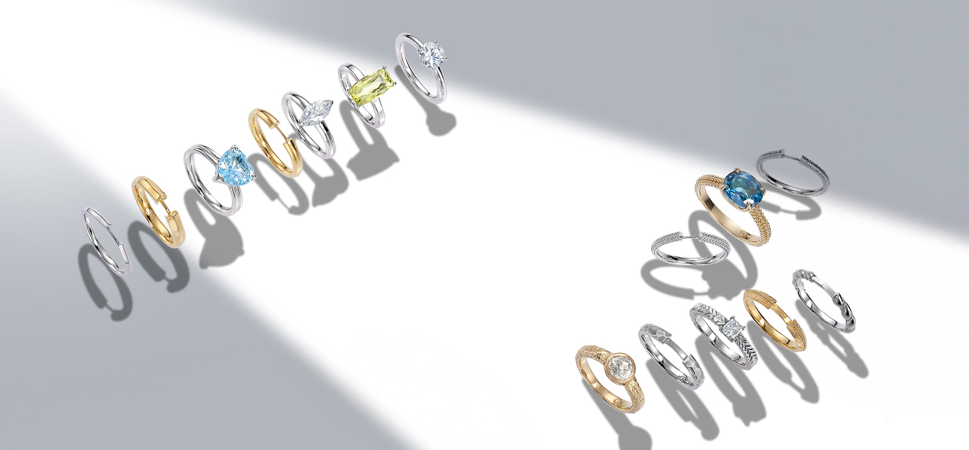 お気に入りの宝石を組み合わせてにぎやかに仕上げたり、メレダイヤを添えてクラス感を高めたり。