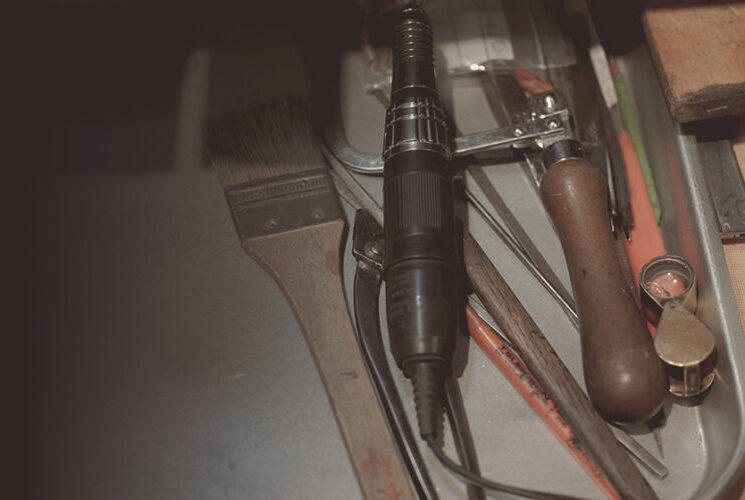火を使う修理は原則お受けできません。接着やカシメなど状態に応じて対応します。